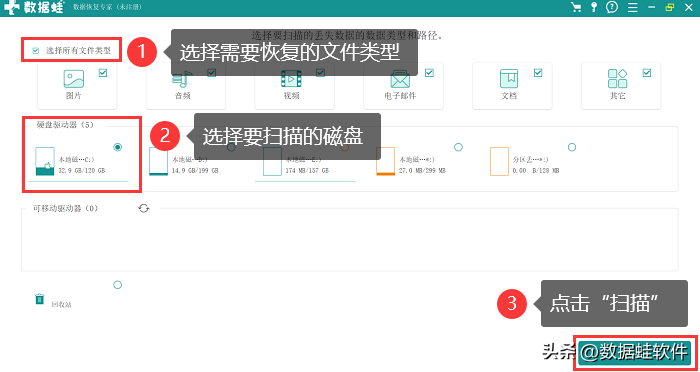 如果我們在清理磁盤的過程中有數據的丟失,可以嘗試使用此軟件進行數據的恢復。該軟件擁有強大的掃描和恢復功能,支持各種類型文件的恢復,且操作步驟簡單,只需要跟著以下步驟進行操作,就可以滿足大部分人的數據恢復需求。操作如下: