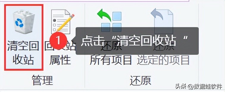 - 在桌面上找到【回收站】圖標,進入后,點擊左上角【清空回收站】。