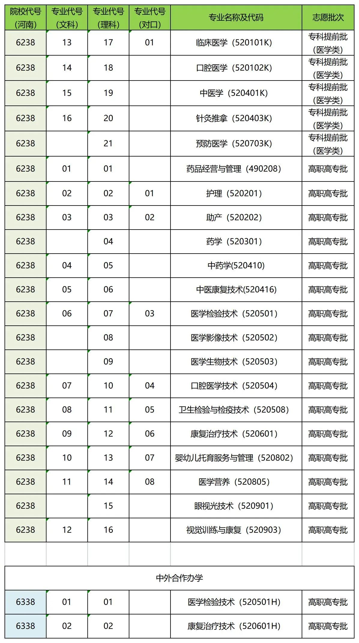 河南院校代碼、專業代號及志愿批次圖片