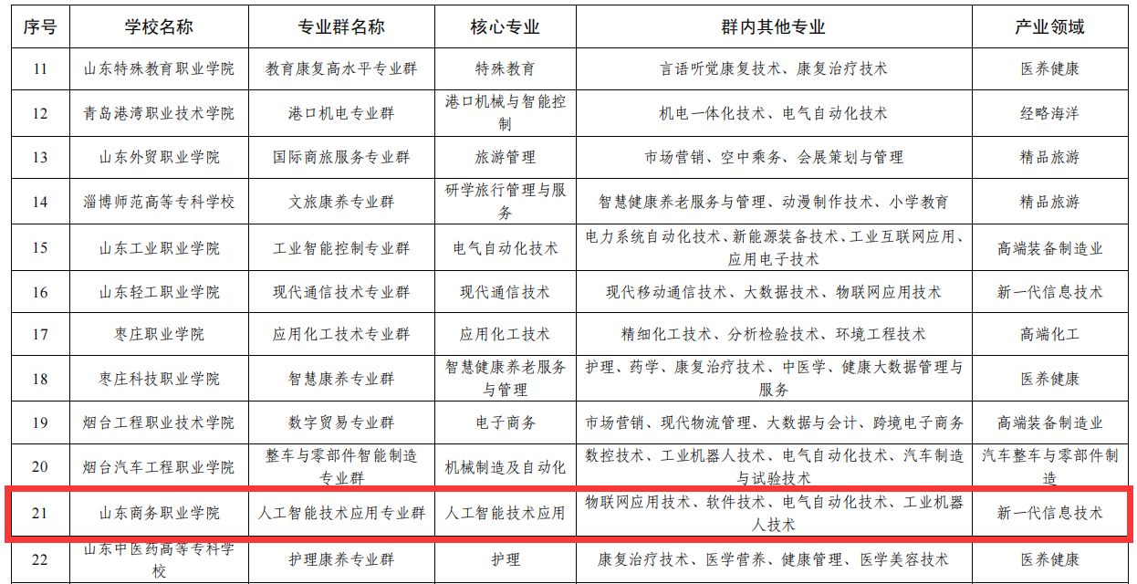 導讀近日,省教育廳公布山東省第二批高等職業教育高水平專業群建設項目名單,山東商務職業學院人工智能技術應用專業群榜上有名,這是山東商務職業學院第3個獲批立項的省級高水平專業群。 黨的二十大報告強調,“推動戰