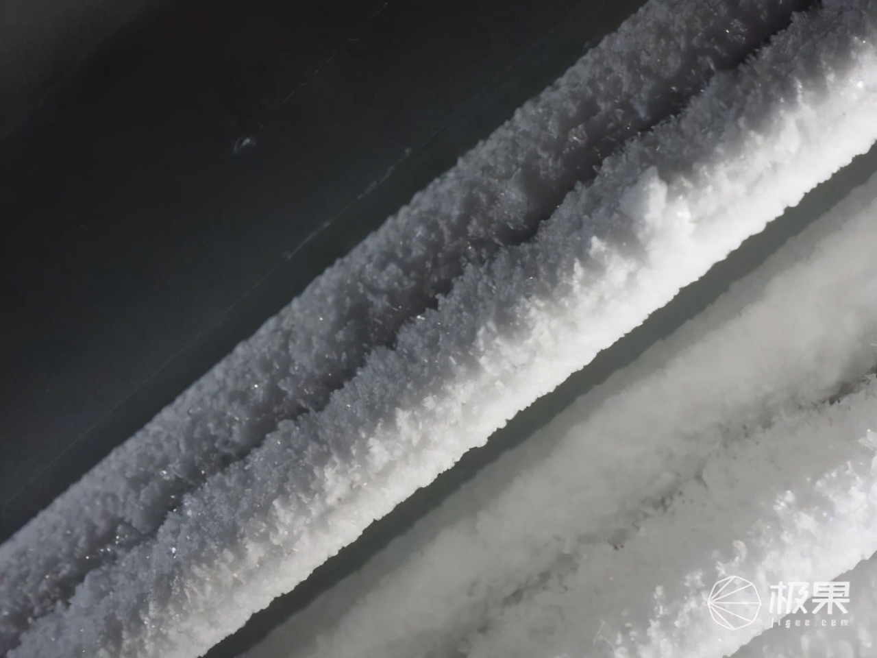 82km與107km相比,在低溫下仍然能有76%左右的性能。而從時間上來看,3小時24分鐘與4小時27分鐘,低溫下同樣持續了常溫條件下的76%左右的時長。因此與廠家標注的大致相同。在零下十度仍然能保持7-8成的續航,極果君覺得夠用了,畢竟這不是電動汽車,在更低的溫度騎行,且不說車能不能承受,人應該不能……。看看這零下10度的冷庫頂上的冰,就知道極果君在里面呆了幾個小時有多苦