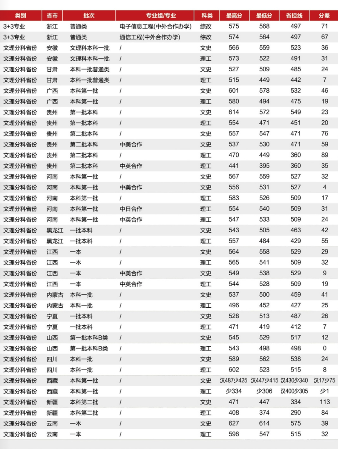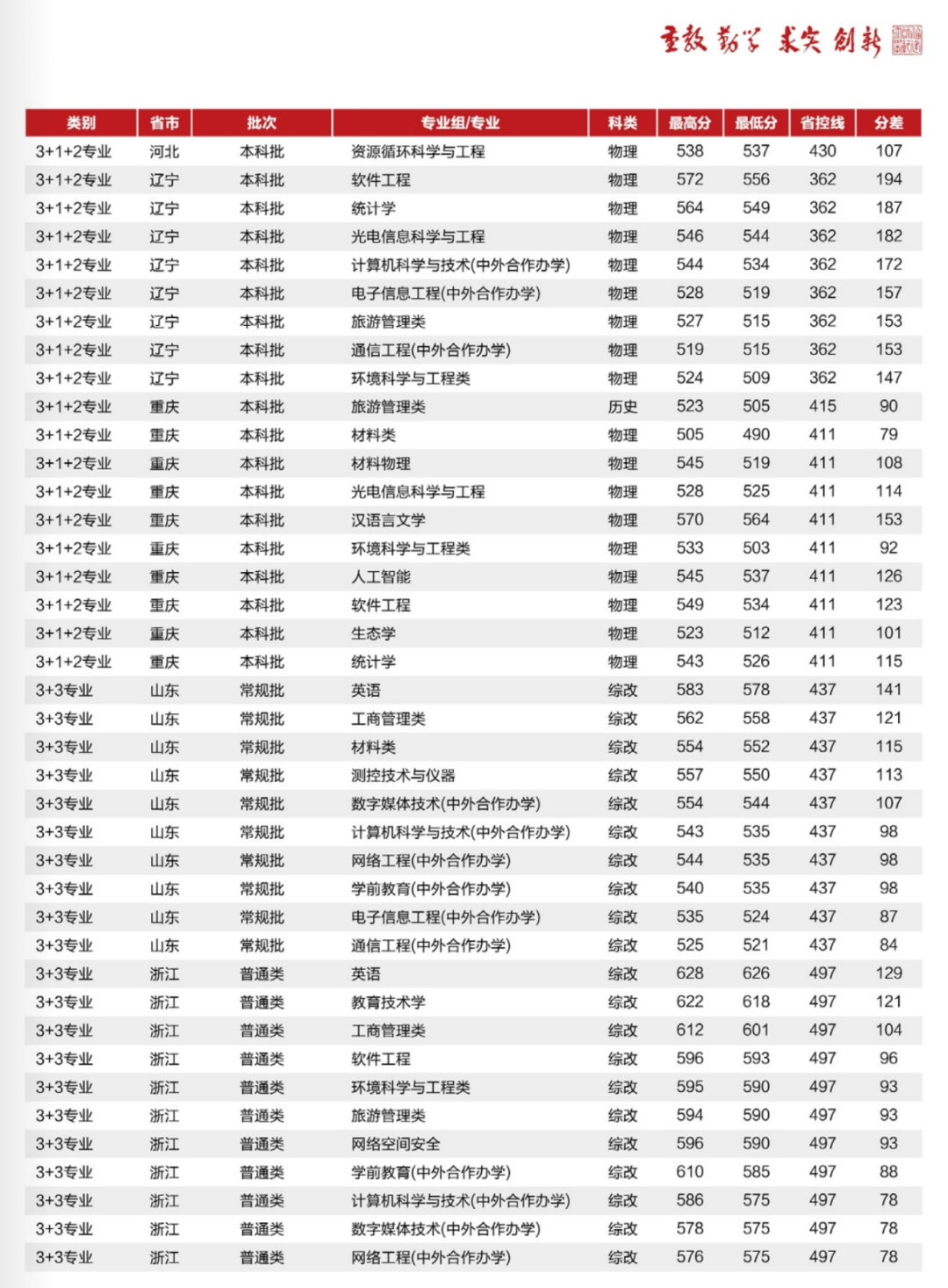 分省分專業錄取情況統計表