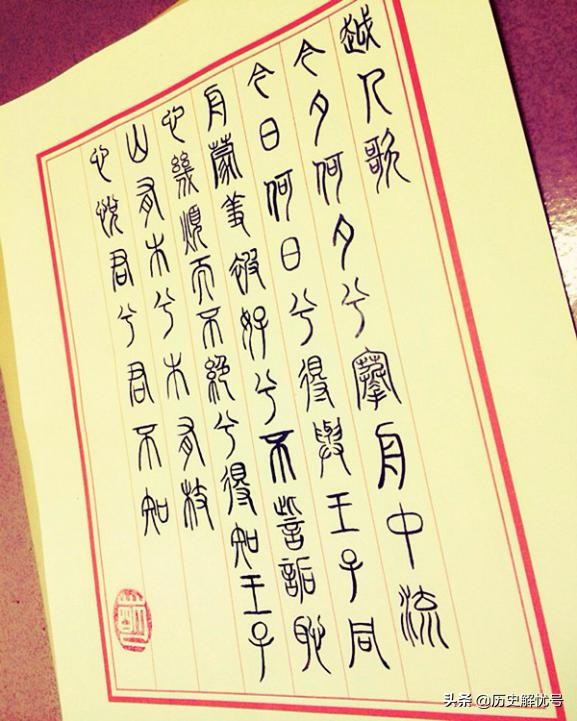 那么,《越人歌》的古越語版本是什么樣的呢?西漢劉向的《說苑》一書中記載了古越語的32個字:&34;濫兮抃草濫,予昌枑澤,予昌州。州鍖州焉乎,秦胥胥。縵予乎,昭澶秦逾。滲惿隨河湖。&34;