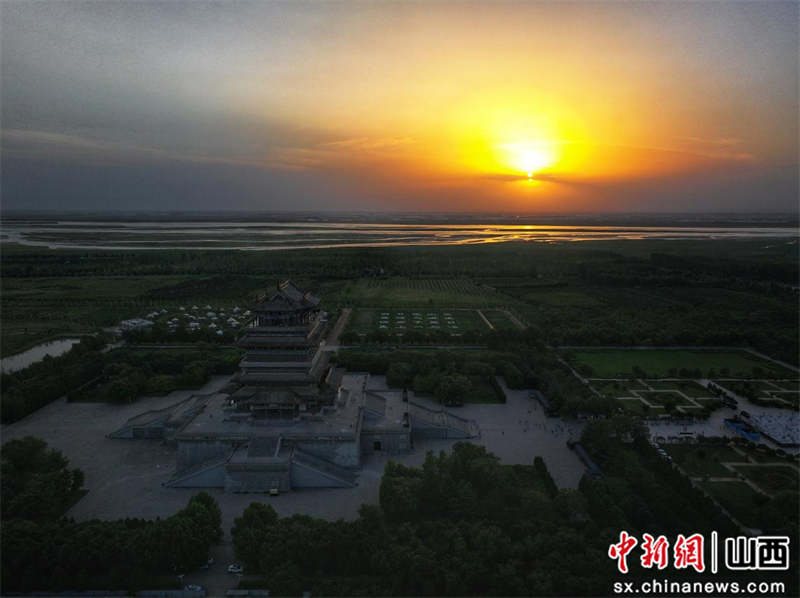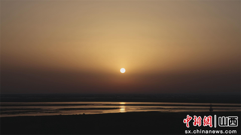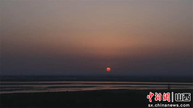 中新網山西新聞8月23日電 8月22日傍晚,山西省永濟市鸛雀樓,太陽依山而落,從白色到金黃色再到紅色,徐徐向地平線下沉,還原了王之渙《登鸛雀樓》中“白日依山盡,黃河入海流”的絕美畫面。(完)