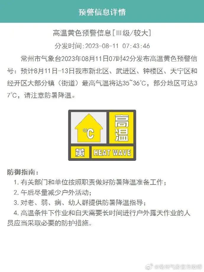 常州發布高溫報告和短期天氣預報
