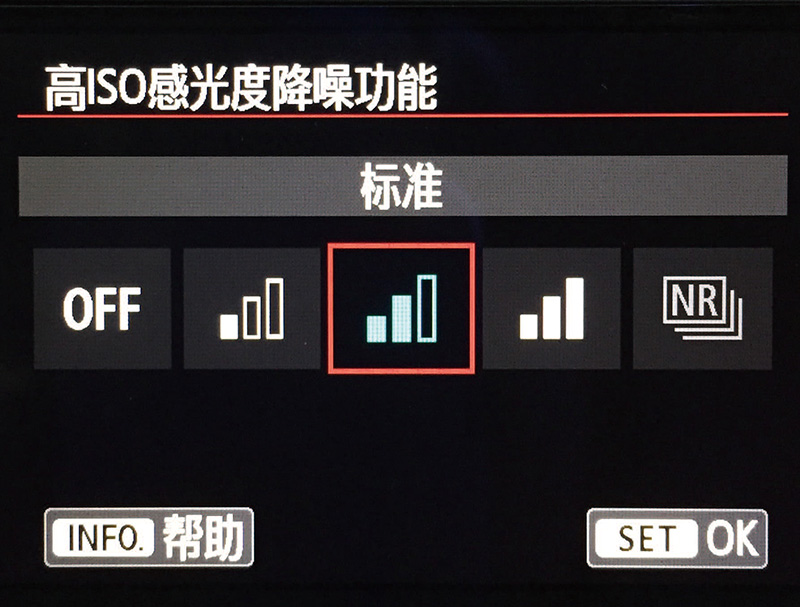 為了減少噪點對圖片質量的影響,可以開啟你相機的高ISO降噪功能。你可以在相機的拍攝菜單里找到這個選項。這個選項提供給你各種不同級別的降噪,雖然它叫高ISO降噪,但在各種ISO設置下你都可以使用這個功能。當然如果你想在后期處理時再降噪也可以關閉這個選項。