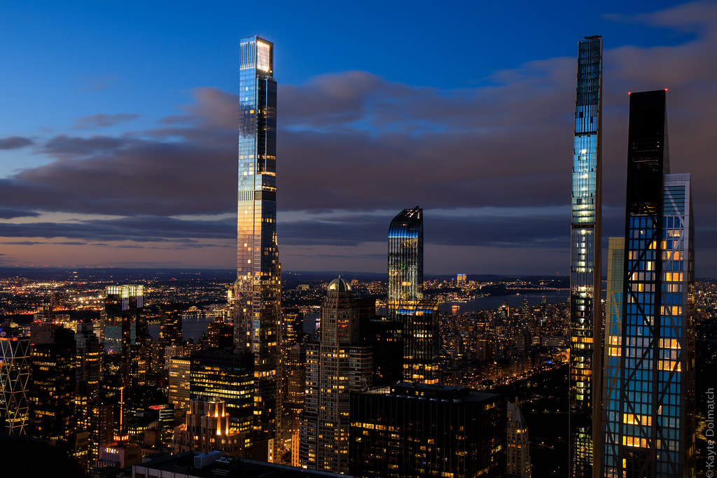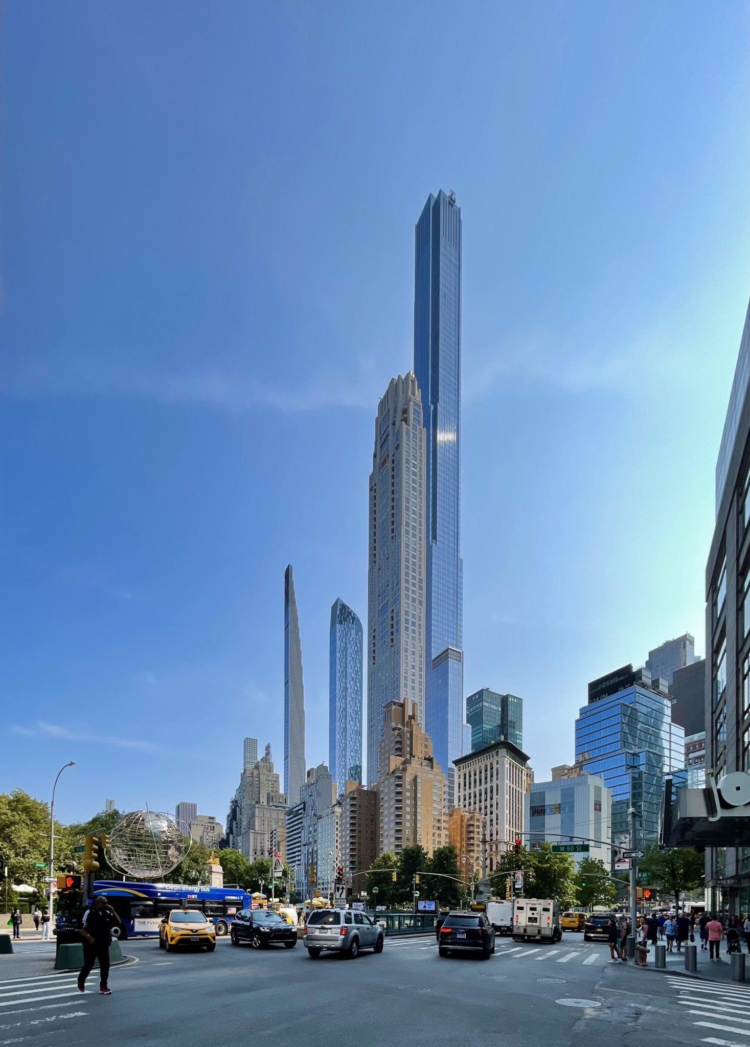紐約——聯合國總部所在地,是全球最具影響力的城市。它的城市天際線至高點為541.3米世貿中心一號樓(其中天線部分占124米),同時它還擁有兩座全球最高的摩天住宅,分別是:中央公園塔(472米,美國主體結構最高樓,下圖左1)和施坦威塔(435米,下圖右2)。