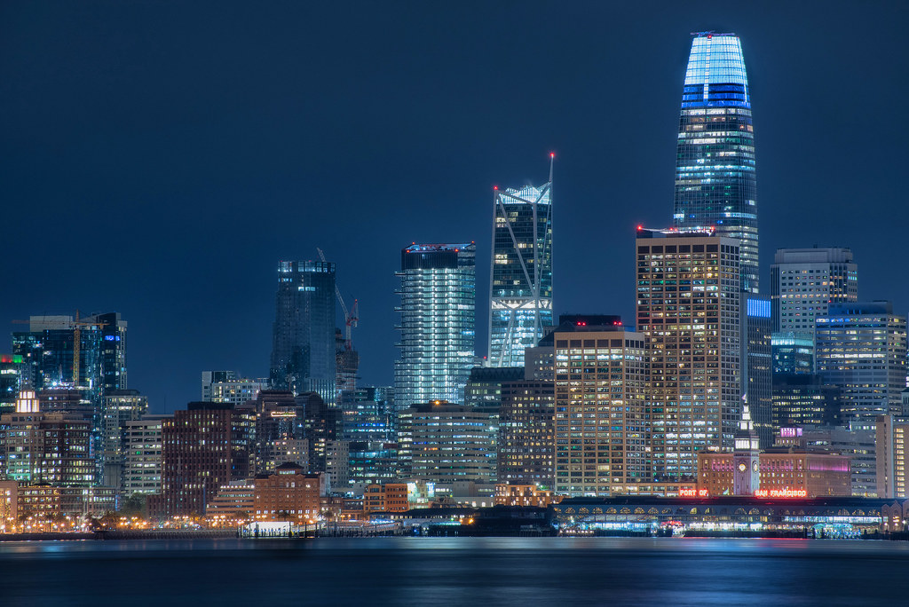 舊金山是世界著名旅游勝地、加州人口第四大城市。它的城市天際線也是典型的美國風格,摩天樓高度集中,最高建筑Salesforce Tower也僅僅326.1米。