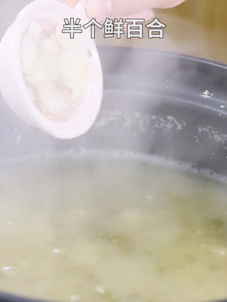 綠豆 200克、鮮百合 半個、冰糖 適量