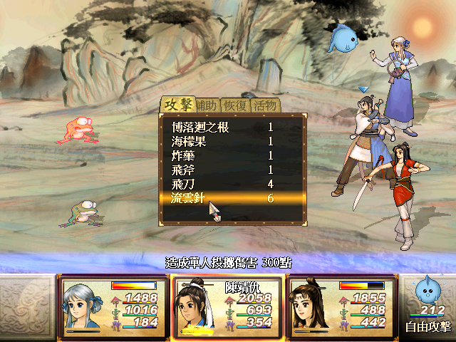 流云針,是專門用來殺鬼蛙的利器,一次性就可以帶來300的固定傷害。兩發就可以干掉一只。(投擲武器還得是金磚啊!后期可以多煉化出幾塊金磚,用來作為暗器投擲,一次性最高傷害9999血,這效果強勁啊!)