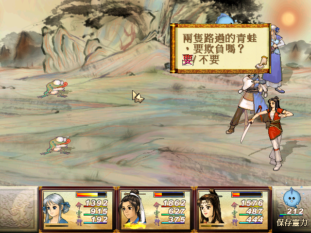遇到這兩只青蛙之后,系統就會提示:“兩只路過的青蛙,要欺負嗎?”