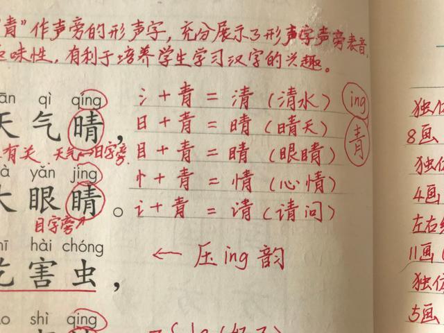 青就像媽媽一樣,它生出了一群字寶寶,而這些字寶寶的發音也都是從輕而來。學到了這里,大家是不是也知道了形聲字聲旁表音、形旁表義的特點呢。
