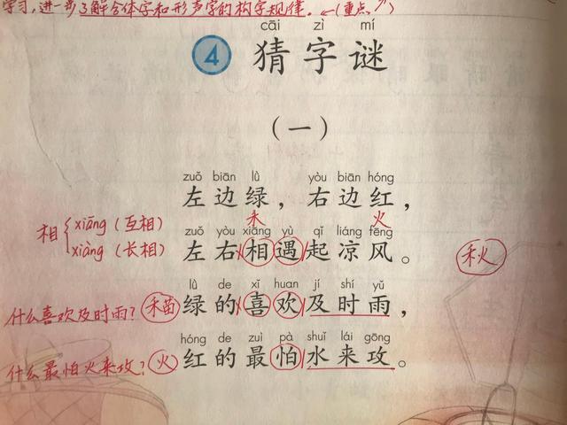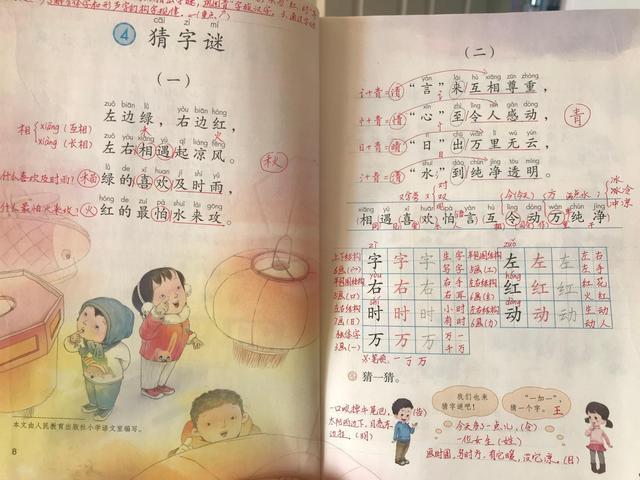 另外,在一年級的課文講解中會涉及到許多學習方法,下面就以一年級下冊。第一單元第四課《猜字謎》為例,展開去學習吧。
