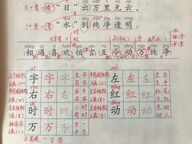 生字的學習可以詳見老師的語文書手寫筆記和整理的會寫字知識點。