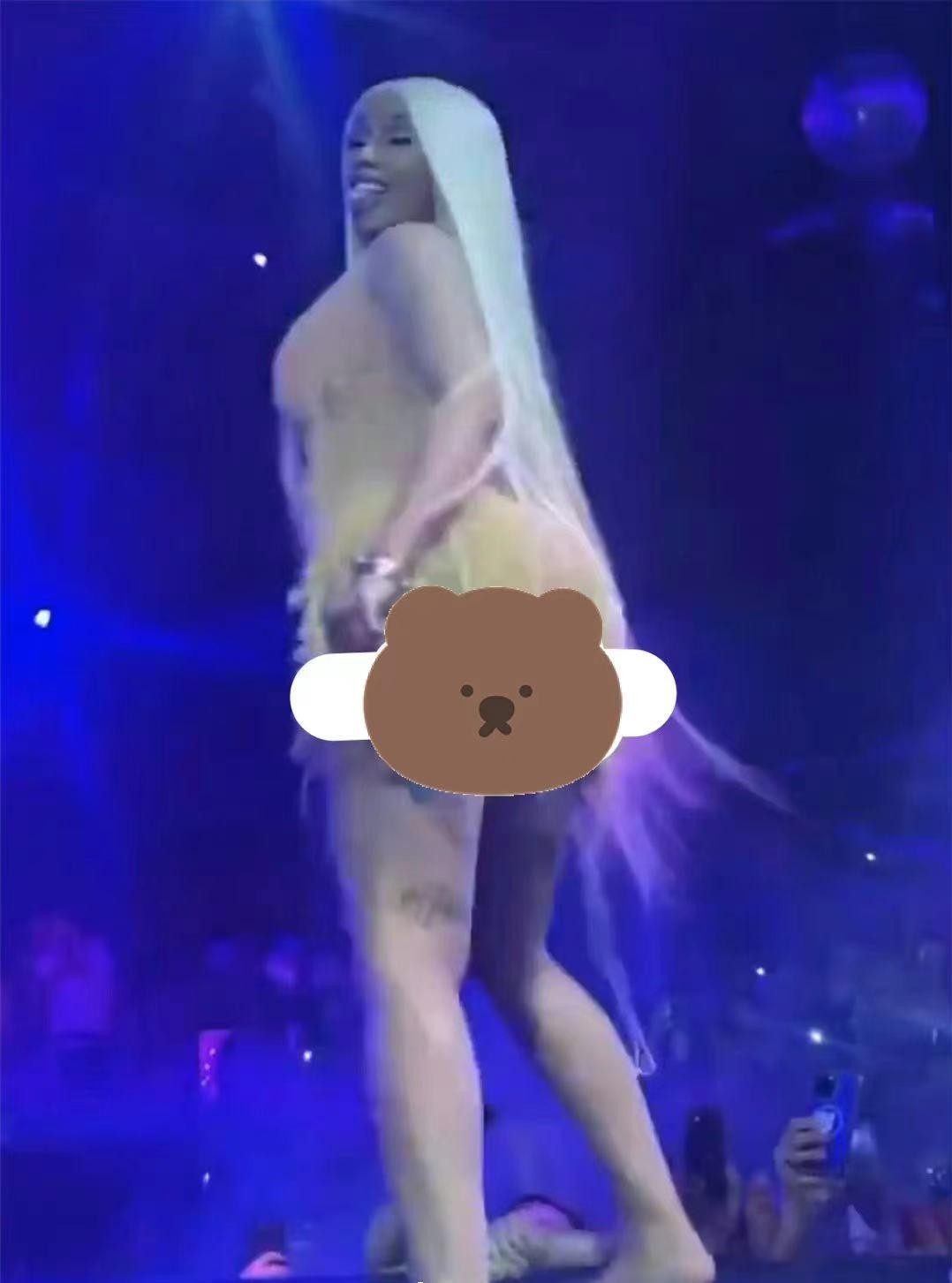 或許是太過興奮,Cardi B走到了舞臺邊和粉絲互動,靠近舞臺的粉絲激動無比,拿出手機記錄和偶像親密接觸的場景,然而他卻看到了令人震驚的一幕。Cardi B竟然是真空上陣,在扭動間,短裙上移,裙下風光一覽無遺,而隨著Cardi B一起舞動的還有一根衛生棉條的白線……