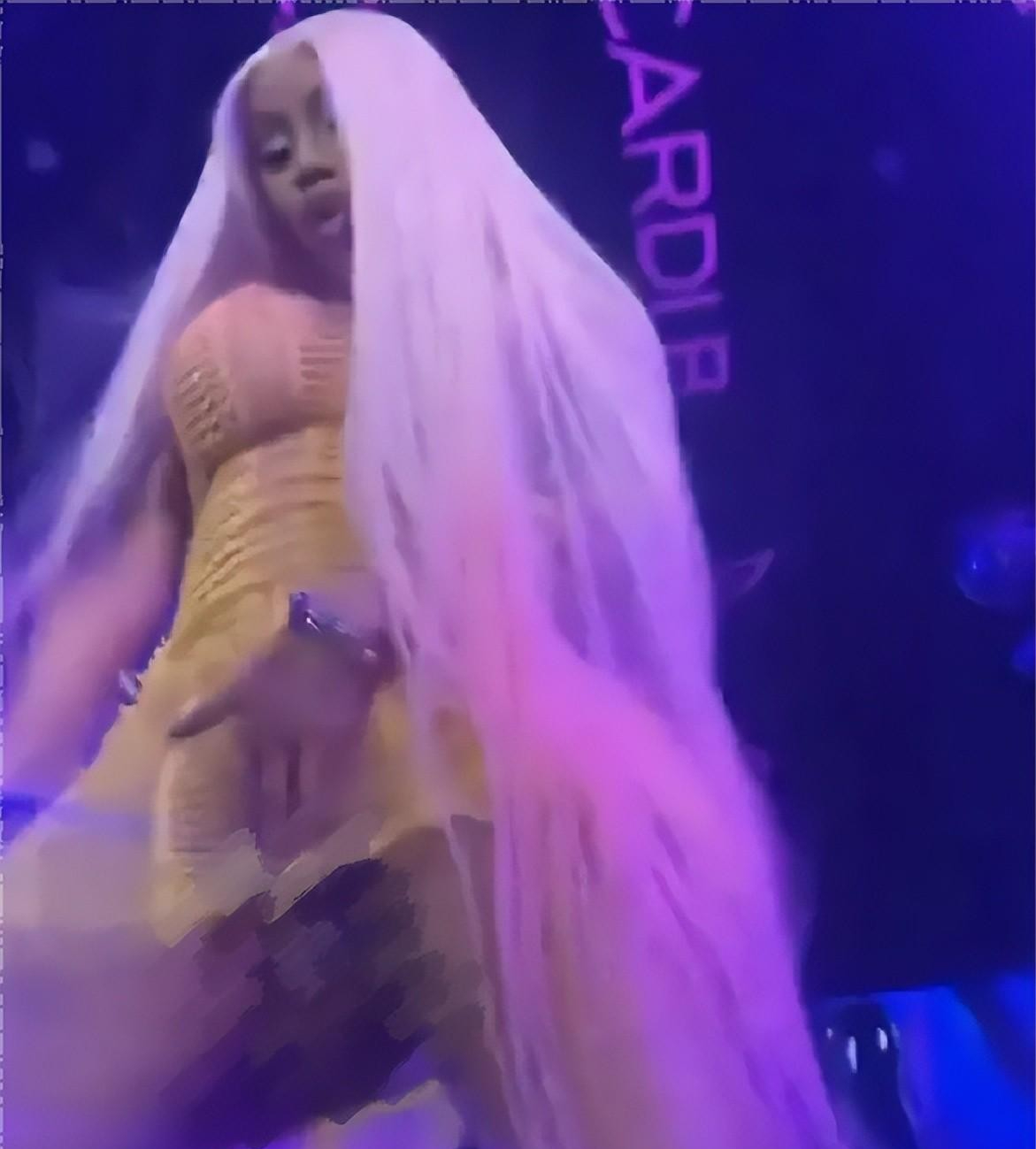 近日,美國知名說唱歌手Cardi B的一則演出視頻引發大眾熱議。視頻中,她身穿一條黃色緊身短裙,腳踩恨天高,一頭白色長發直達大腿,大方展示自己火辣的身材,隨著音樂舞動。