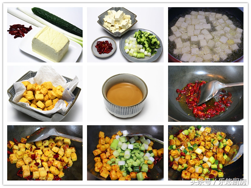 豆腐的做法有很多種,這道宮保豆腐是從宮保雞丁演變而來的,只是將雞丁換成了豆腐。另外,我為口感更加清爽,特意將花生換成黃瓜。這道菜色澤紅潤,味道鮮辣甜香,是一道非常下飯又易做的家常菜肴。
