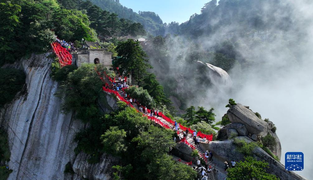 進入暑期旅游旺季,位于陜西省渭南市的西岳華山迎來五湖四海的游客。據了解,自7月以來,華山景區日均游客接待量已超過2萬人次。