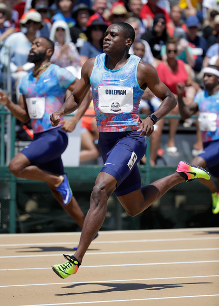 96年出生的美國猛將科爾曼在2017年跑出9秒82的世界最佳成績,倫敦世錦賽百米上戰勝博爾特,以9秒94摘銀。2018年,科爾曼狀態火爆,2月跑出6秒34打破格林6秒39的60米世界紀錄,3月世界室內田徑錦標賽上以6秒37獲得金牌,蘇炳添6秒42摘得銀牌。室外賽季,5月尤金鉆石聯賽男子百米大戰,科爾曼在超風速2.4米/秒條件下,以9秒84獲得亞軍。9月的鉆石聯賽總決賽布魯塞爾站,科爾曼創造9秒79的個人最佳獲得百米冠軍,是歷史上跑得最快的第八人。