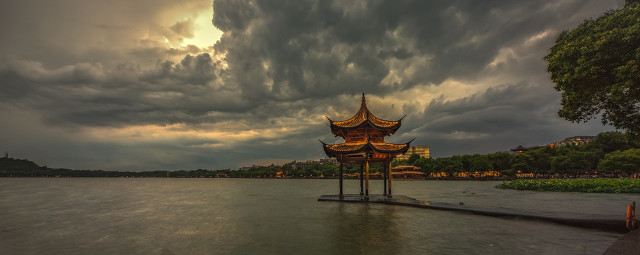 附圖八幅,黑云翻墨,白雨跳珠,望湖樓下水如天。