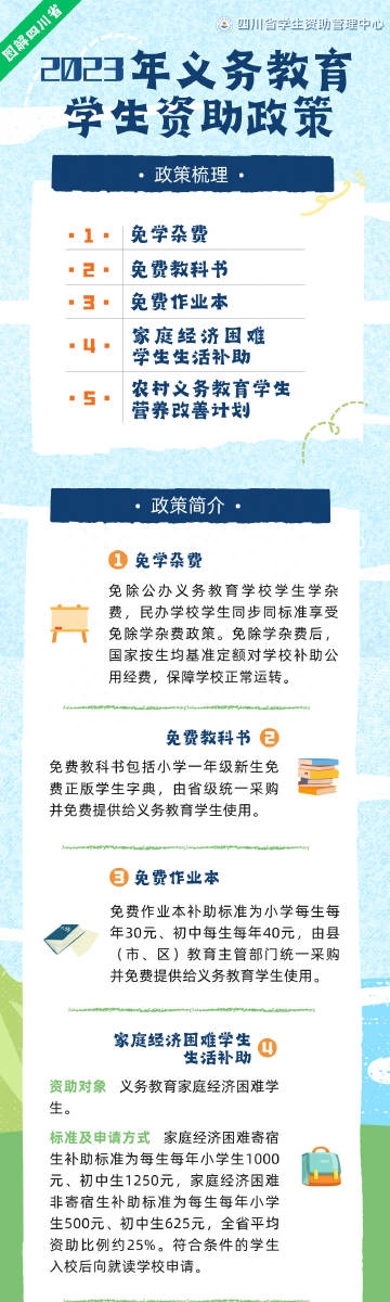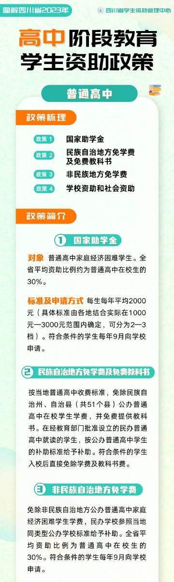 四川省學生資助管理中心發布四川省義務教育、高中階段教育、高等教育學生資助政策圖解,一起來戳下圖查看詳情↓↓↓ ?(四川發布) ???