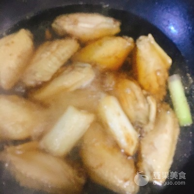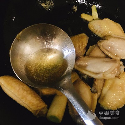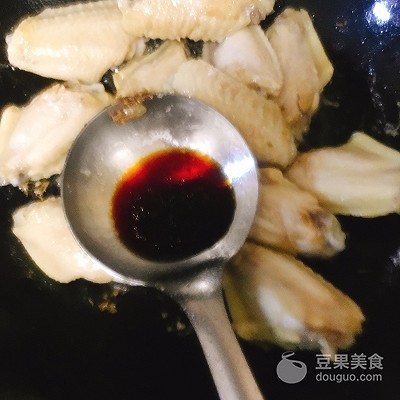4、倒入雞翅,煎至金黃色