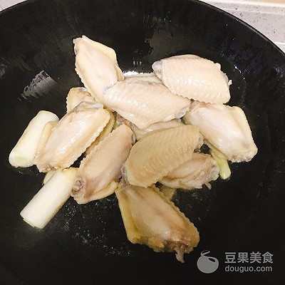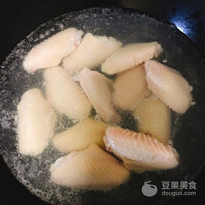 2、做一鍋熱水,待開加入雞翅,燒開撈出