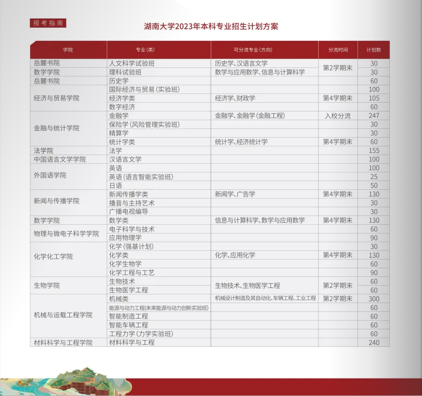 湖南大學2023年本科報考指南已公布,
