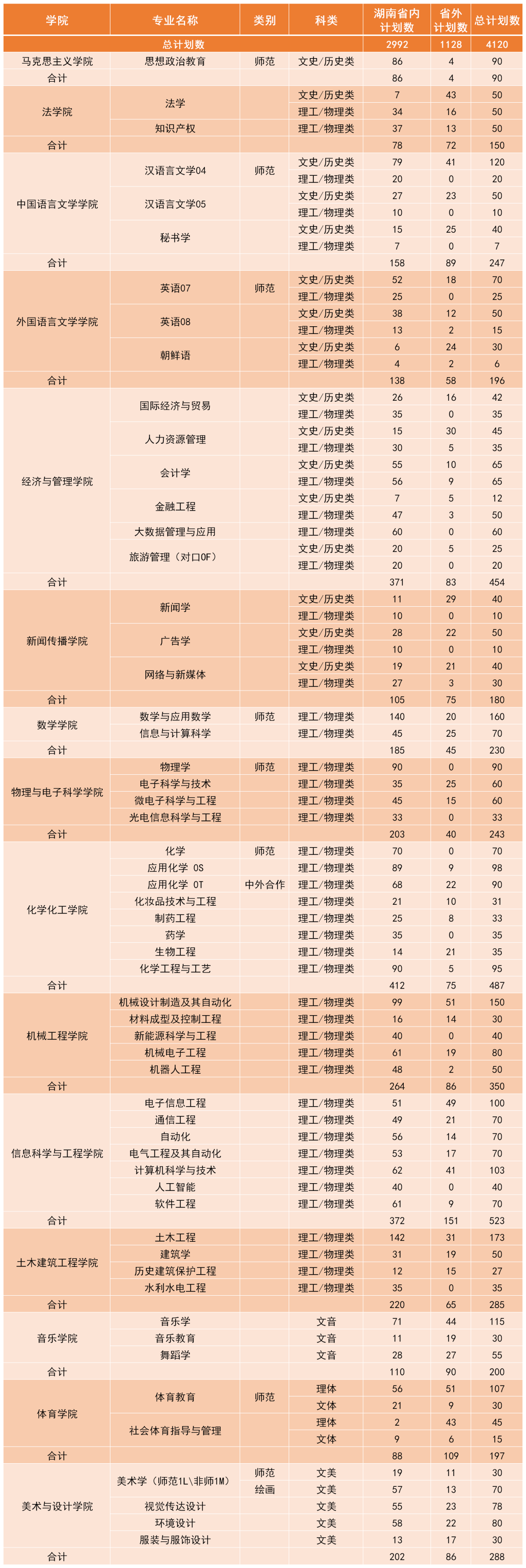 湘南學院2023年普高本科專業招生計劃一覽表已公布,