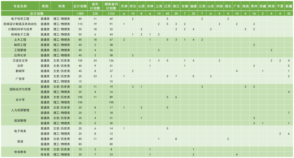 湖南文理學院各省招生計劃已公布,