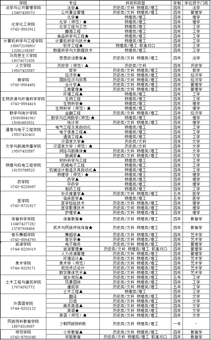 吉首大學2023年本科招生專業及咨詢方式