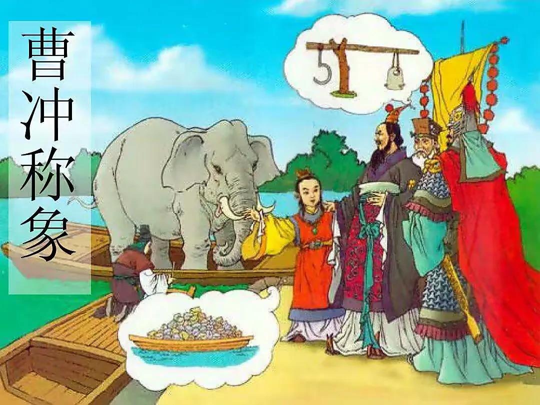 導讀古時候,有一個聰明的小孩叫曹沖,他的父親曹操是一個大官。有一次,別人送給曹操一只大象。曹操很想知道這只大象有多重,就叫手下的官員想辦法把大象稱一稱。這可是一件難事!大象是陸地上最大的動物,怎么稱呢?那