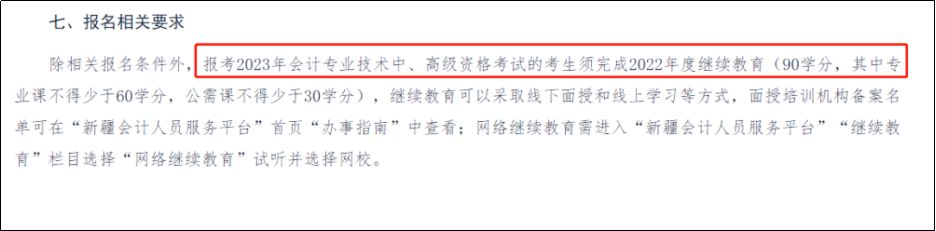②新疆 報考2023年會計專業技術中、高級資格考試的考生須完成2022年度繼續教育。