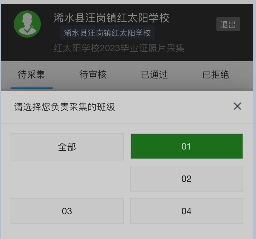 如果是按年級劃分的采集任務,里面有多個班級,首次登錄后會要求教師先選擇班級,這樣后續看到的就只是班主任負責的學生清單了。