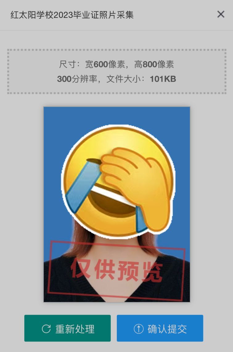 處理完的照片效果如下圖所示,確認無誤后點擊底部“確認提交”按鈕即可。