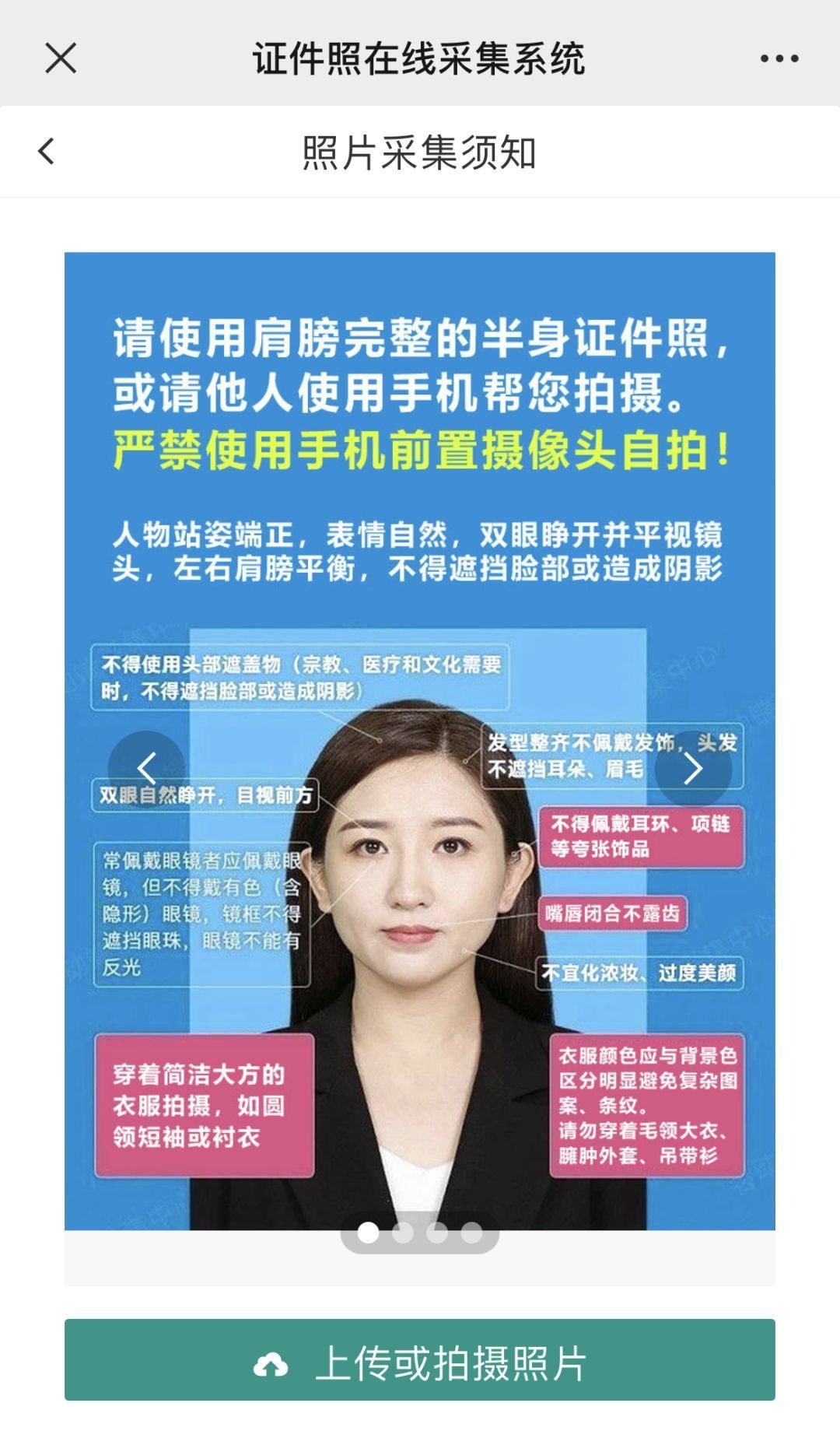 拍照時需確保光線明亮且均勻,不允許出現“陰陽臉”或曝光過度。