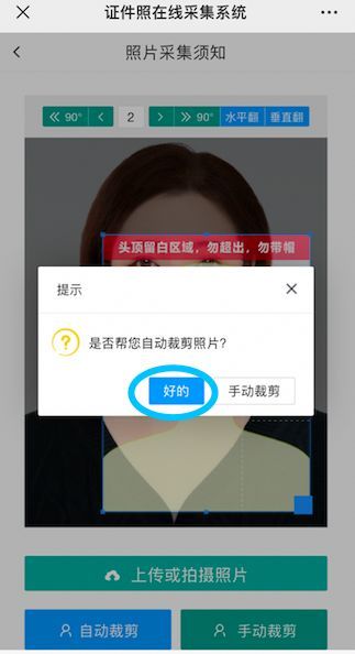 拍完照后,點擊下方“好的”完成系統“自動裁剪”。(特別注意:不要選擇手動裁剪)