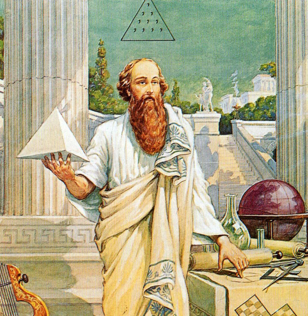 1.畢達哥拉斯:萬物的基礎不是可以感覺的具體事物,而是抽象的數;數才是萬物的基礎;數支配著世界,數包含著萬物的實質;認識世界的結構及其規律,就意味著認識支配世界的數