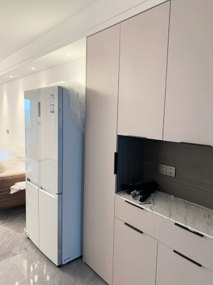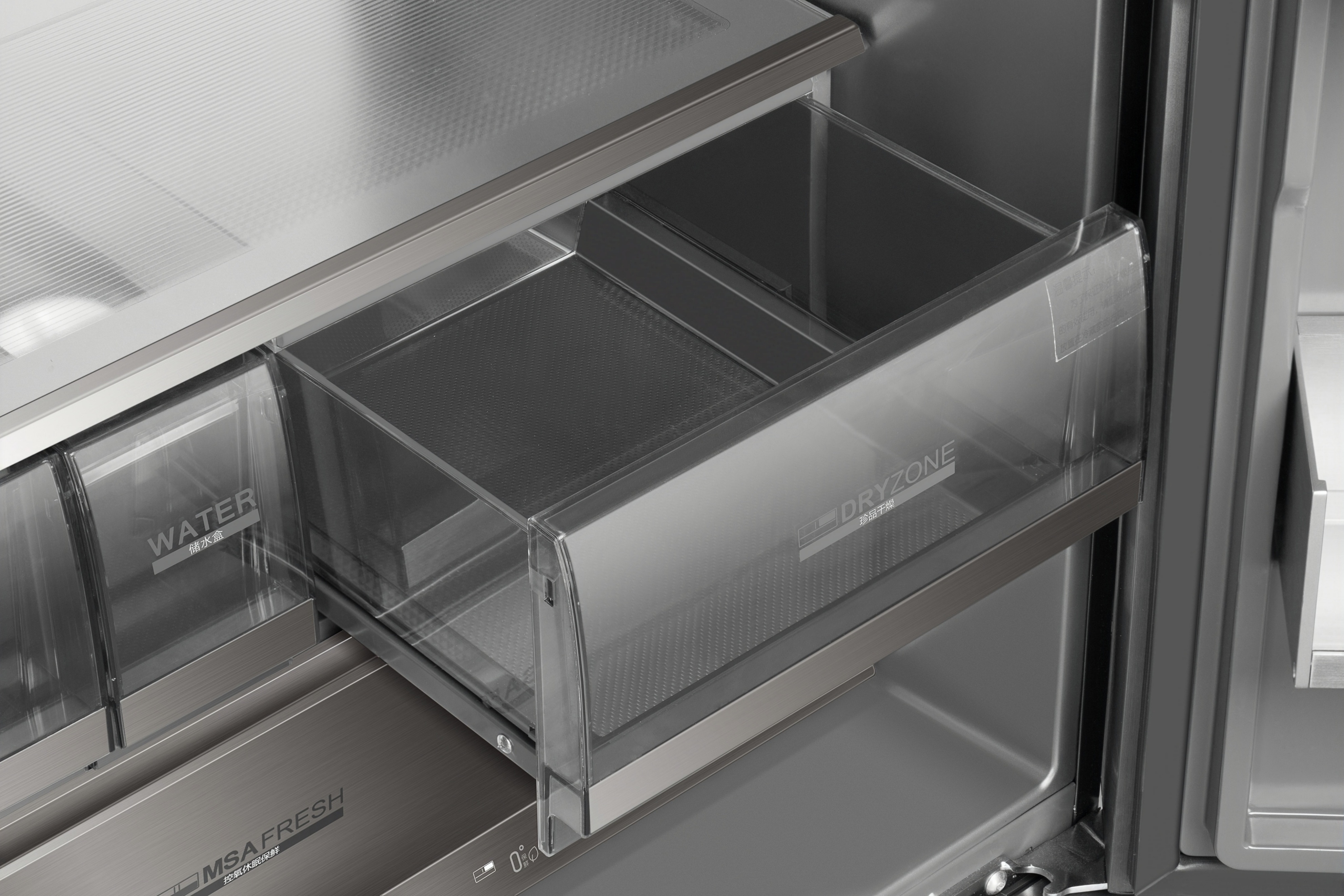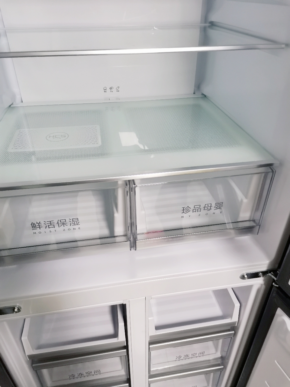 都可以做到0cm嵌入,兩側距離障礙物僅需0.4cm。(薄嵌冰箱是2cm以上,普通冰箱需要15cm以上。)都可以90°開門,且不影響抽屜使用。冷藏室抽屜都具備阻氧功能,保鮮效果更好。