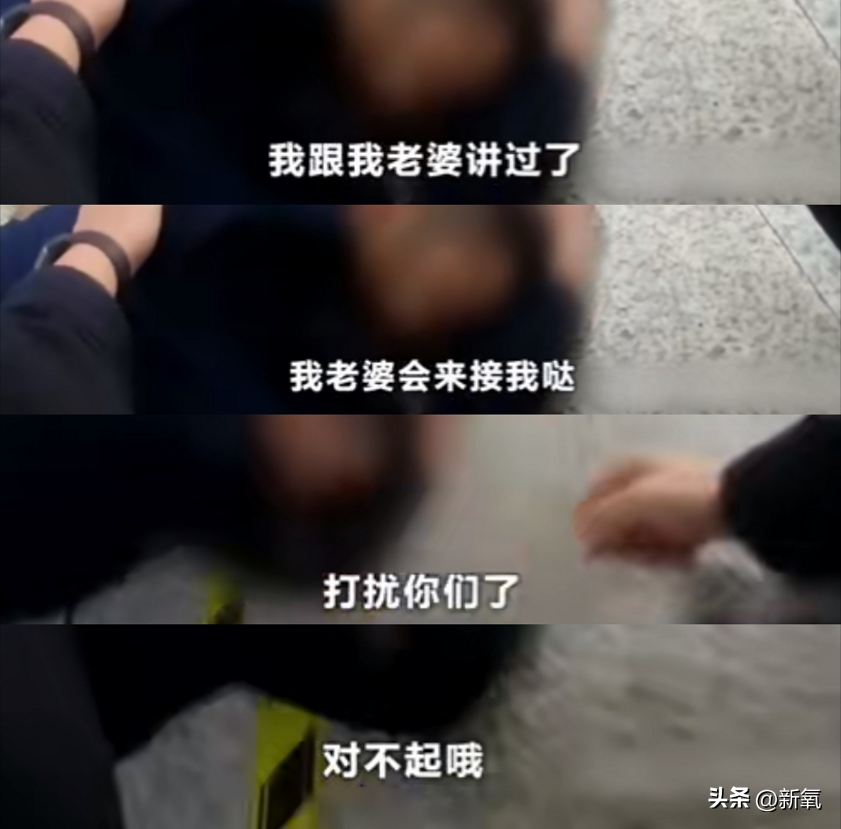 幾分鐘后,男子的妻子趕來,向民警道謝后,走到男子旁邊。