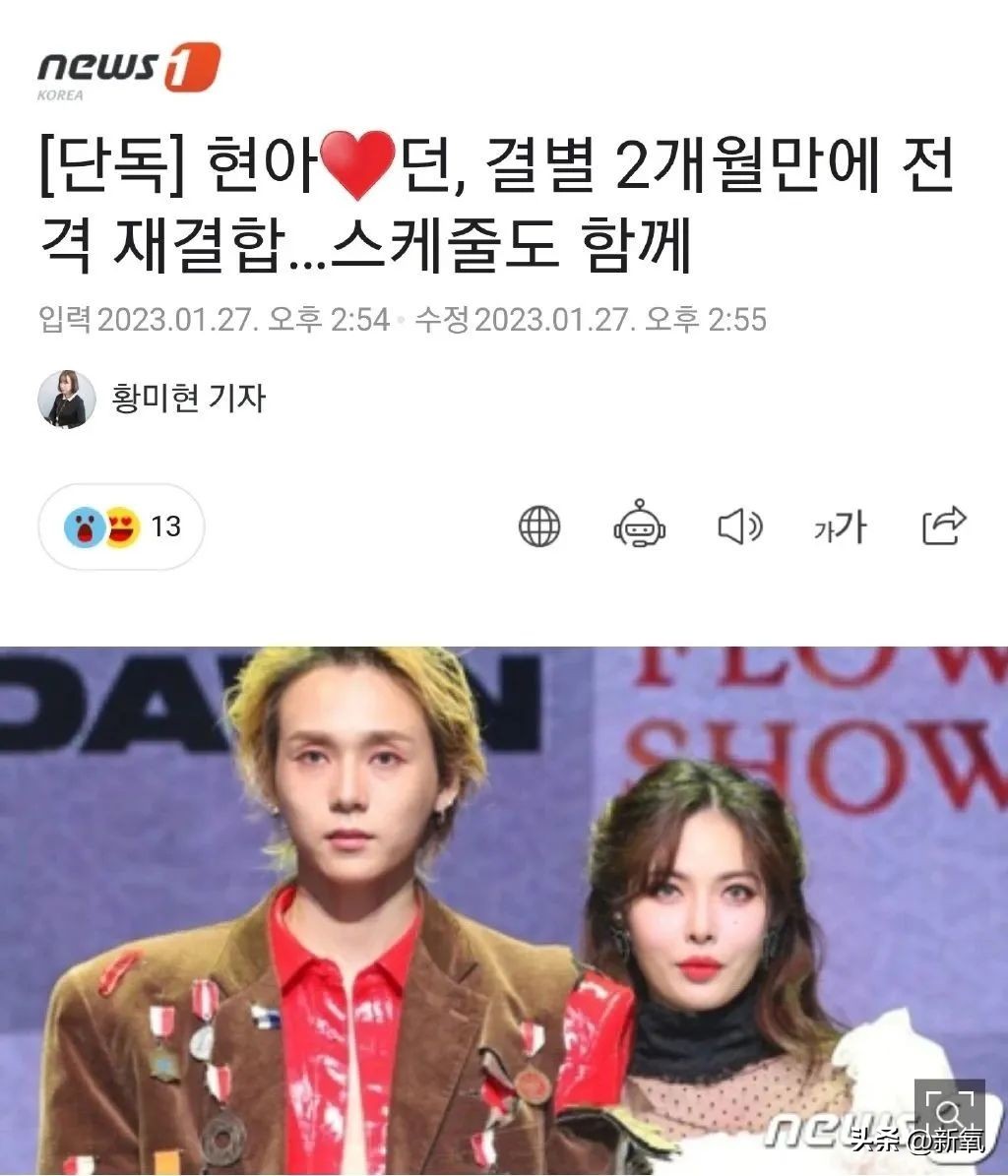 結果這才兩個月,昨天NEWS1就爆出泫雅和金曉鐘已經和好了。