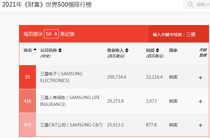 因此,三星集團擁有三家世界500強公司,這個就是三星規模很大的一個體現了。