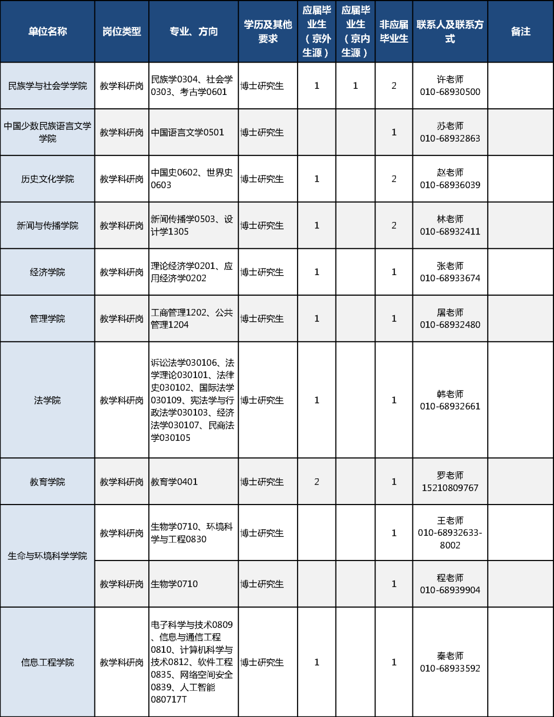 公開招聘組織程序、招聘申報系統問題咨詢人事處(010-68932319);