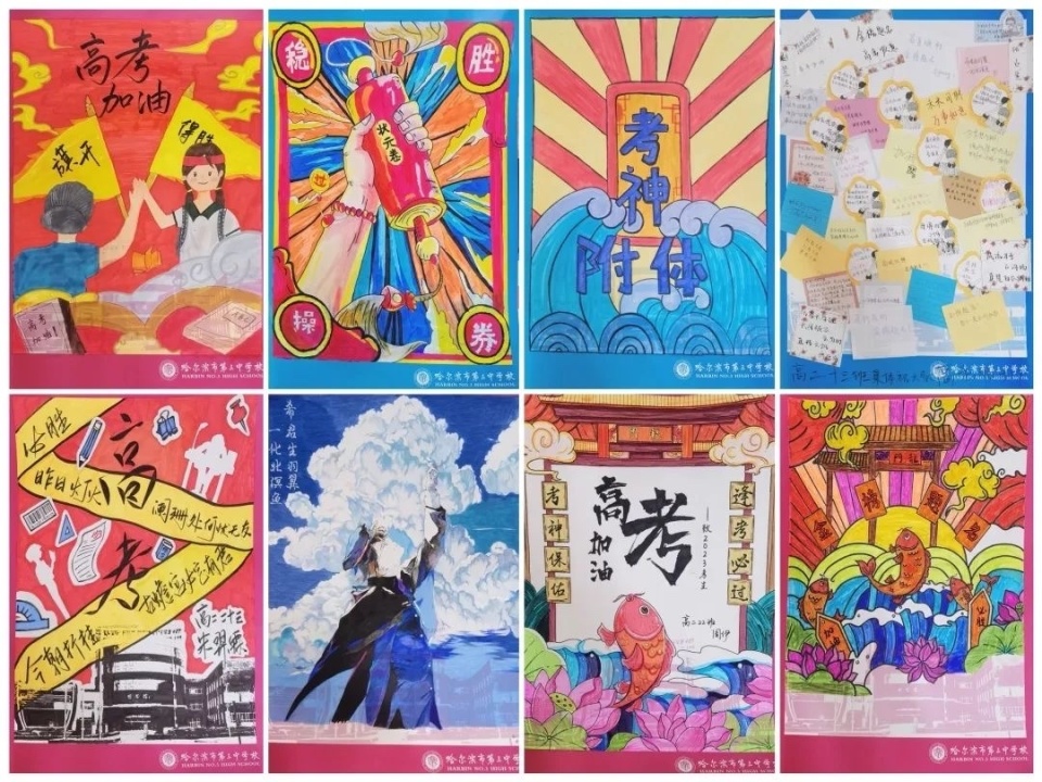在“5·25”全國大、中學生心理健康日到來之際,從23日開始哈三中學生發展中心、心理教研室將在兩個校區開展“關愛自己,從‘心’出發” 5·25心理健康周系列活動。距離高考僅剩10余天,為助力高三備考沖刺,哈三中舉行了“手繪加油海報,傳遞高考祝福”的祝福海報贈予活動,高二學年各班心理委員將手繪的加油海報,親手贈予高三年級學長學姐,為他們送上最誠摯的祝福。
