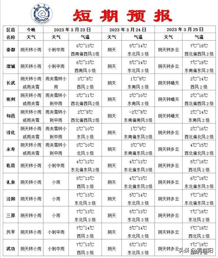 《看咸陽》訊:今天(3月22日)清晨,我市天氣以陰天開場,在厚厚的云層遮擋下,陽光不見蹤影,據氣象監測顯示,07時市區氣溫11.2℃,同時段全市最低出現在北部的,旬邑縣氣溫5.3℃。
