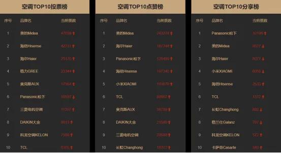 我們先來看下截止目前通過大數據平臺展示的排名前十的空調品牌,比如:美的、海信、海爾、格力、奧克斯、松下、三菱、小米和TCL等。排名比較靠前的是美的、海爾、海信和TCL、小米。
