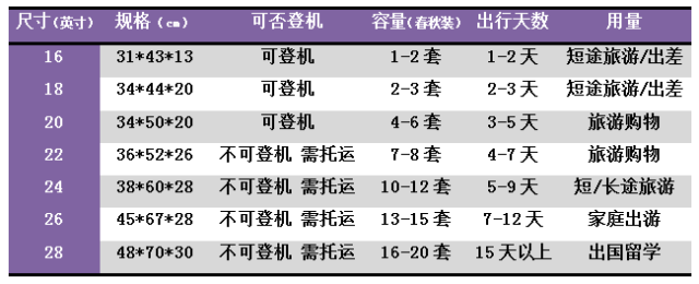 導讀首先,問自己登機還是托運?國內還是國際?帶幾天還是幾個星期?如果你獨自一人,準備玩上三五天,那么20寸就足夠了,還方便隨身帶上飛機,不用排隊等托運;如果打算全家三人出游三五天,那么至少需要攜帶24寸