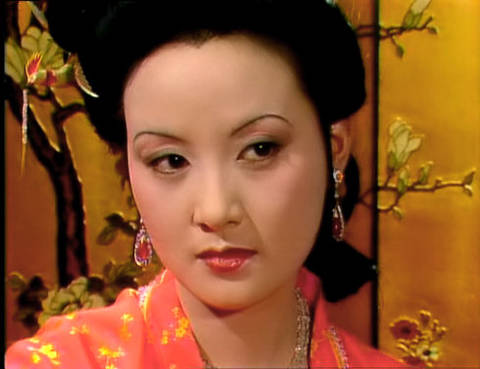 這個人的打扮與眾姑娘不同,彩繡輝煌,恍若神妃仙子,頭上帶著金絲八寶攢珠髻......一雙丹鳳三角眼,兩彎柳葉吊梢眉,身量苗條,體格風騷,粉面含春威不怒,丹唇未啟笑先聞。