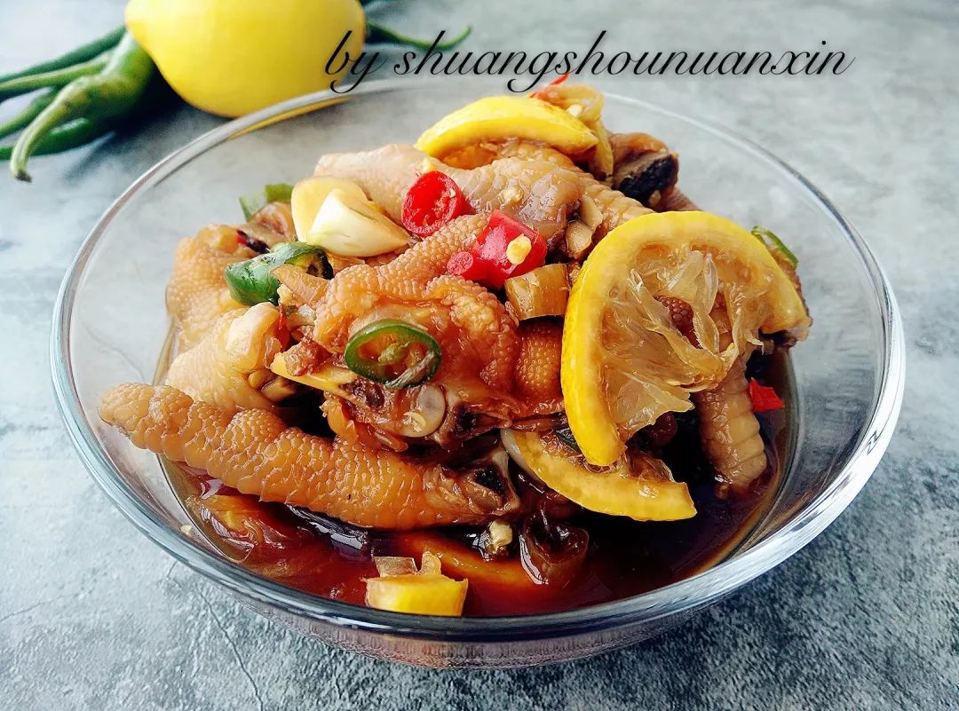 雞爪、檸檬、泡椒小米辣、青辣椒、紅小米辣、白醋、鹽、生抽、味極鮮、白糖、蒜、姜、花椒、料酒、雞精。