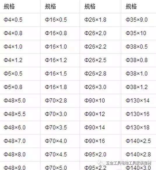 無縫鋼管規格表 不銹鋼管規格型號表